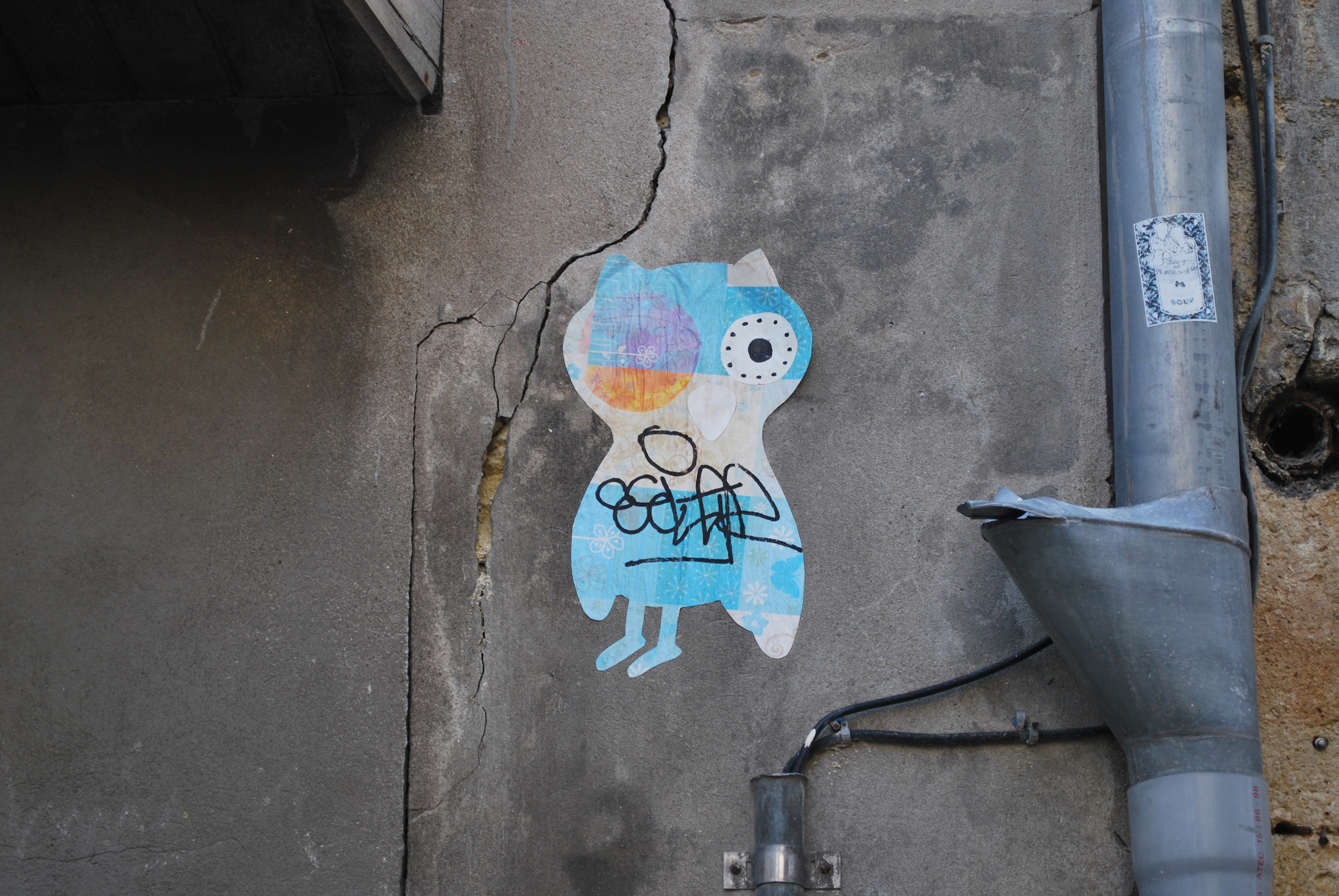 Des collages bien graphiques et sympathiques photographiés à Bordeaux en novembre 2011. Dans les quartiers Saint-Paul et Saint-Pierre de Bordeaux, les animaux et personnages sont observables en nombre mais pas forcément pendant longtemps : la plupart de ces créations street art sont des collages et s’abiment vite avec le soleil, la pluie ou les équipes de nettoyage…