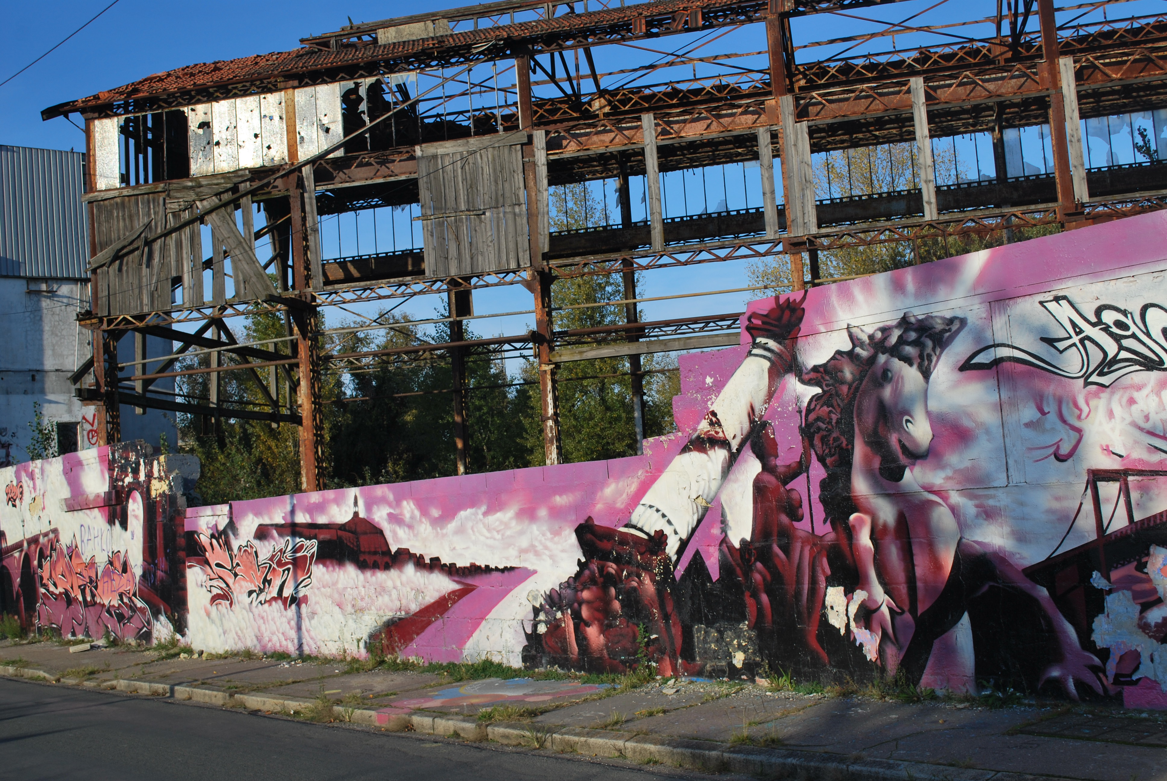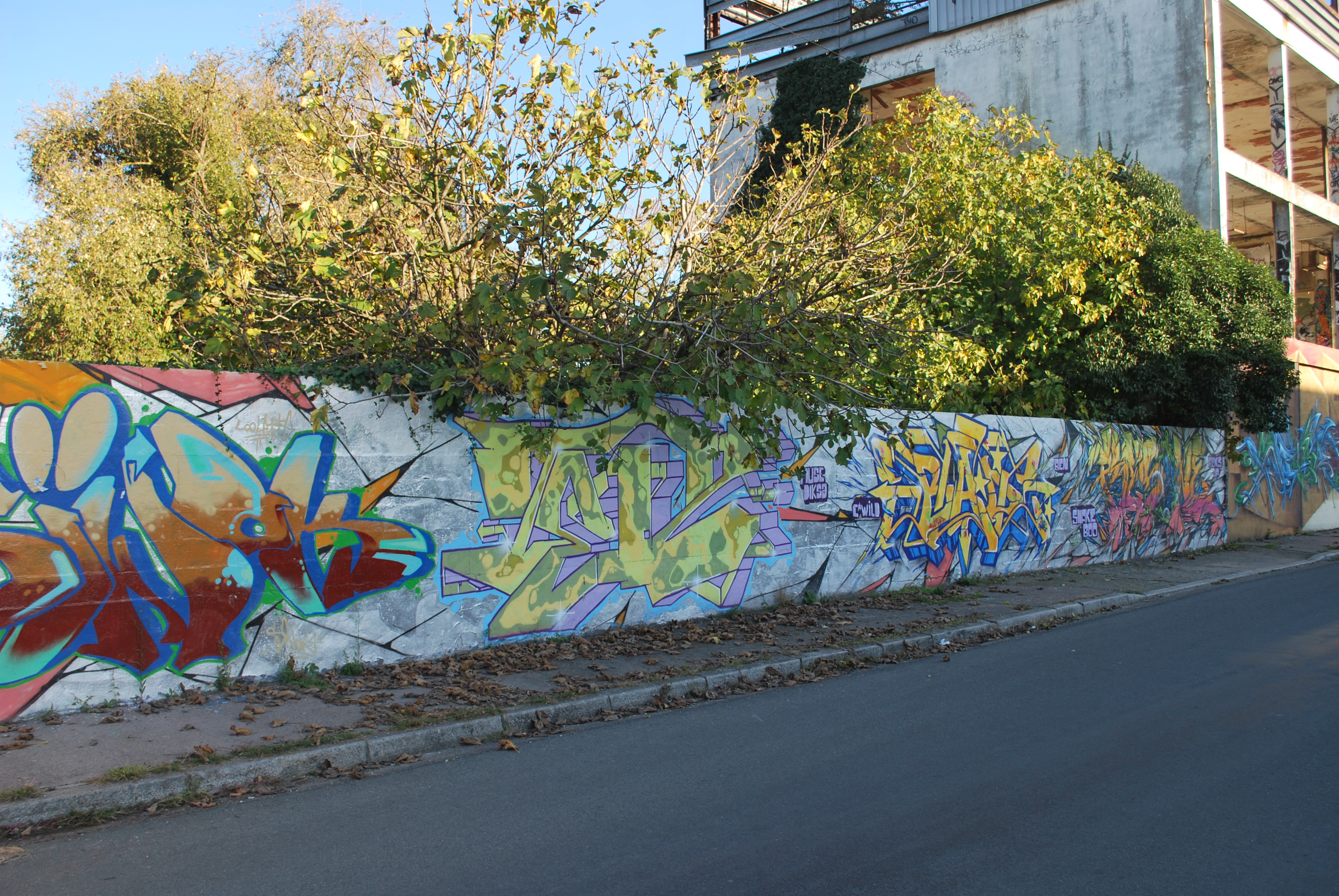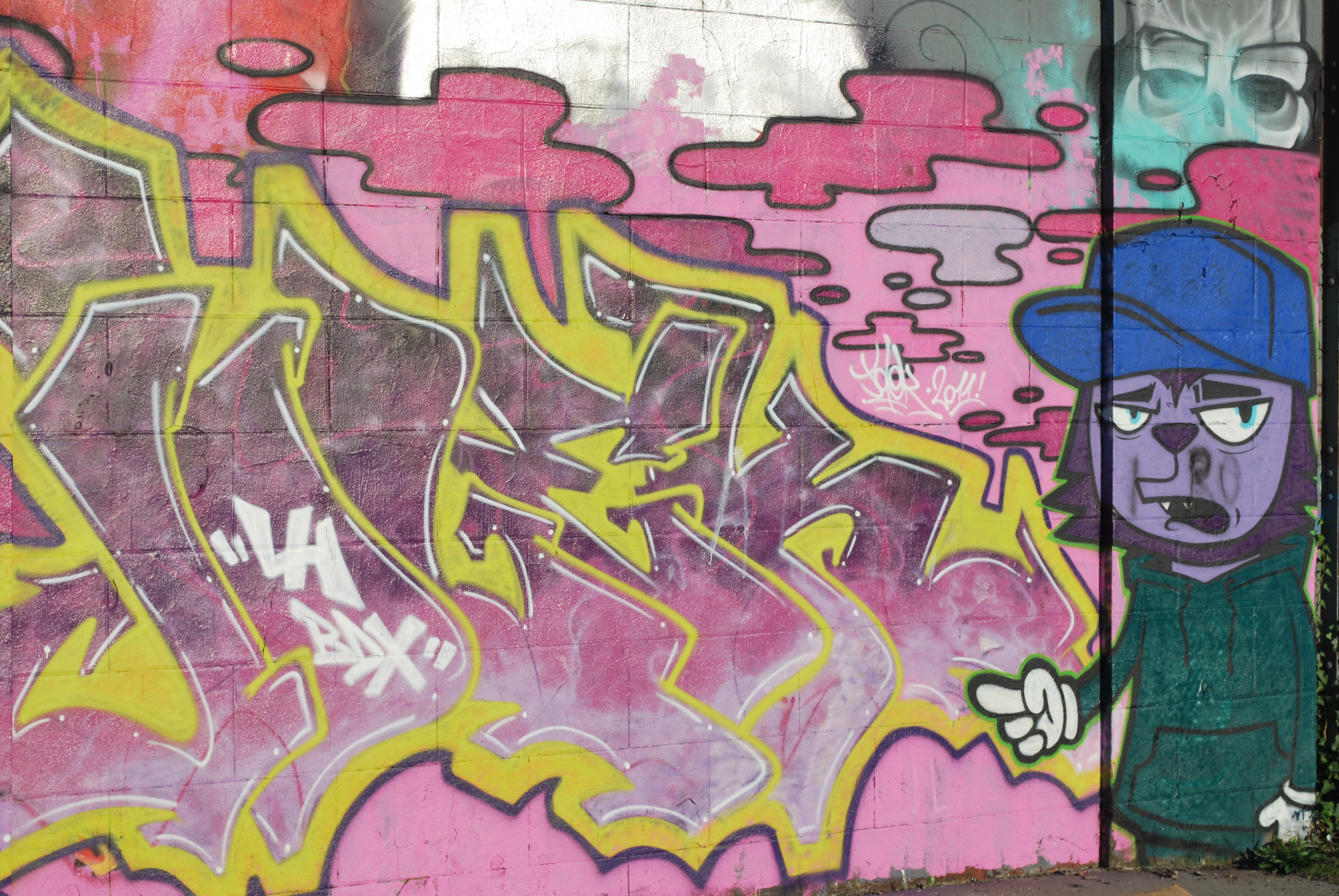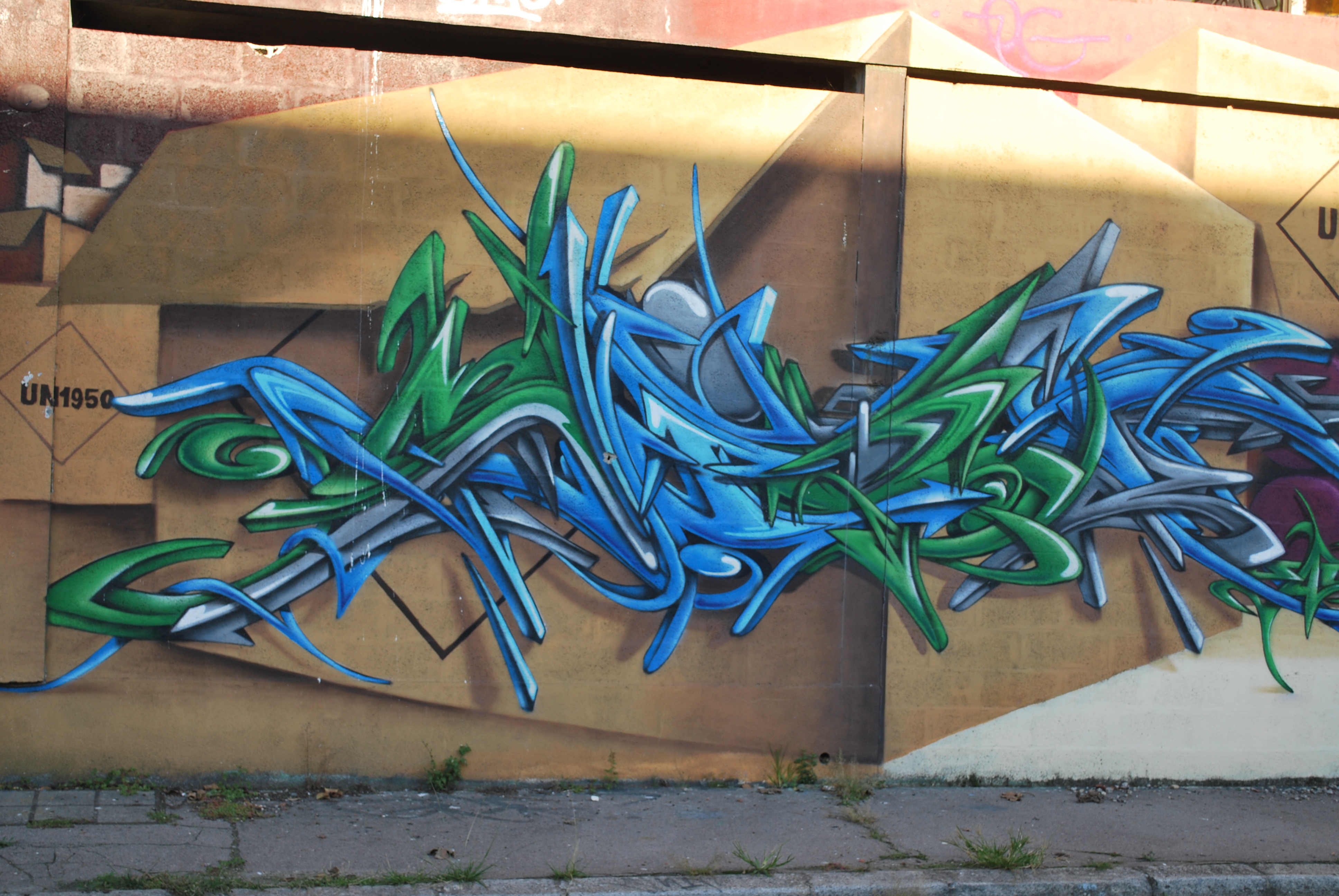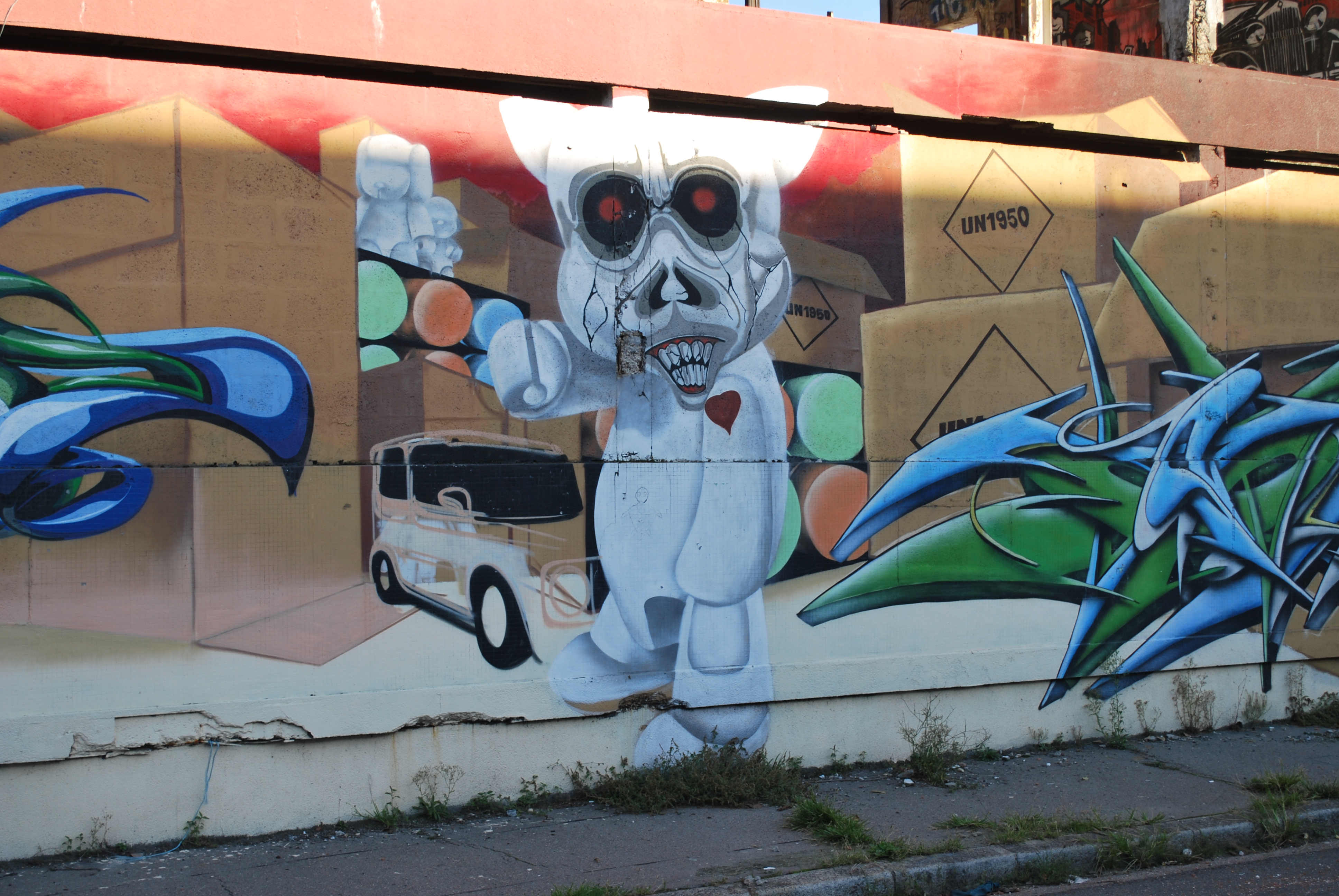 Le lettrage devient illisible ! Il s’agit d’un travail sur la forme, le style et les effets. Des personnages sont éventuellement présents. Les lettres sont enchevêtrées, déformées, non reconnaissables. C’est une production qui se situe entre le lettrage et la fresque.