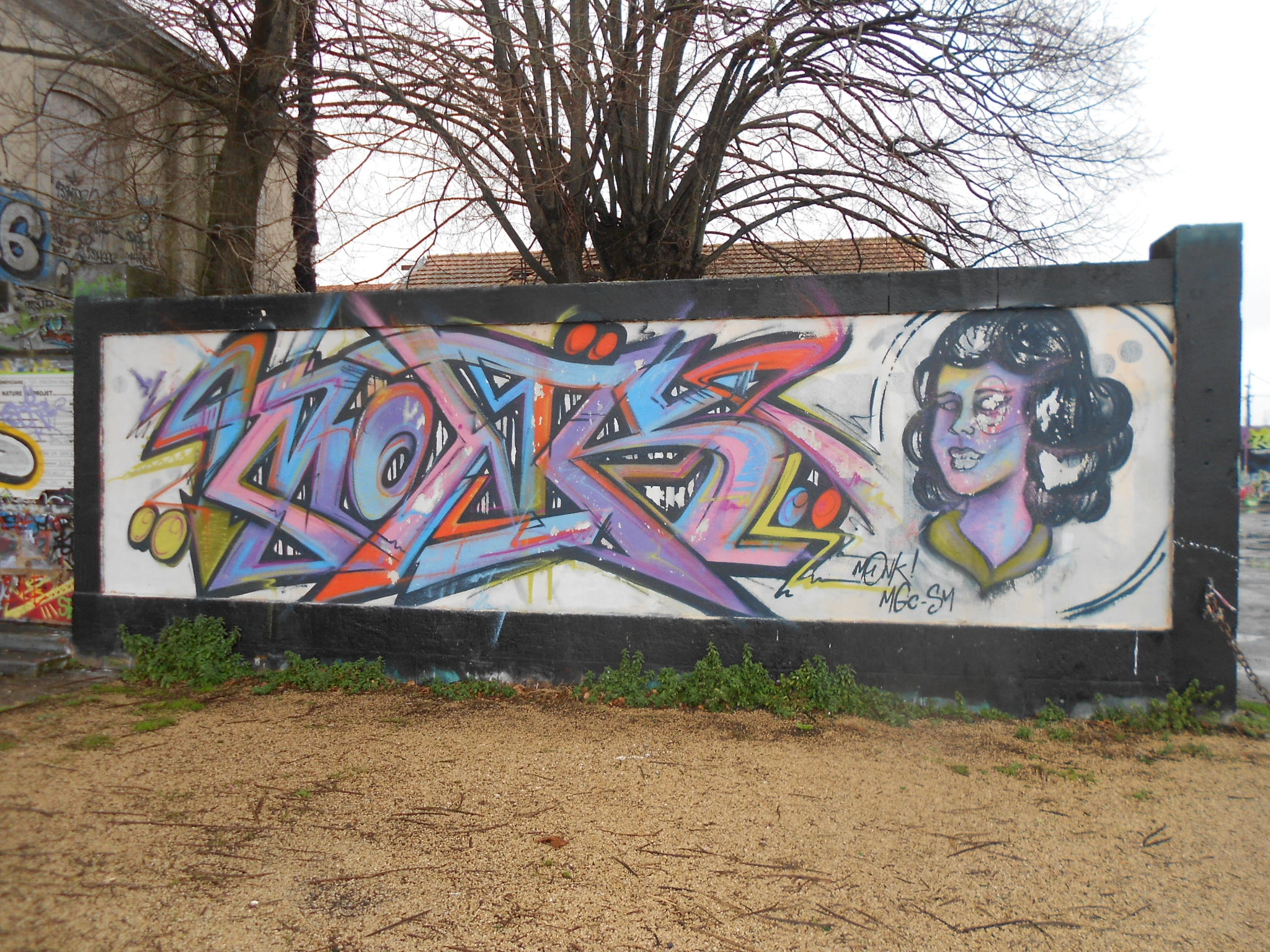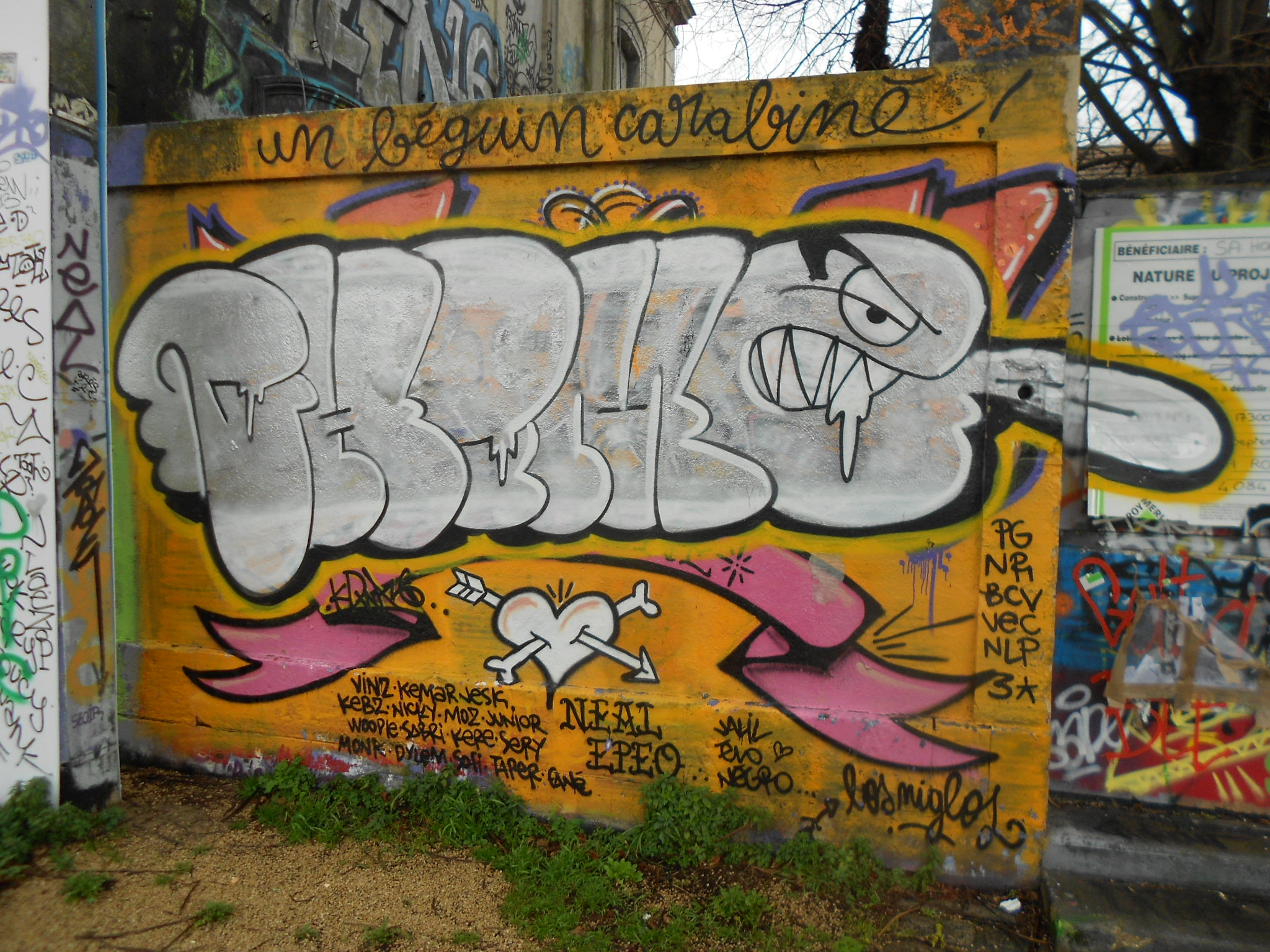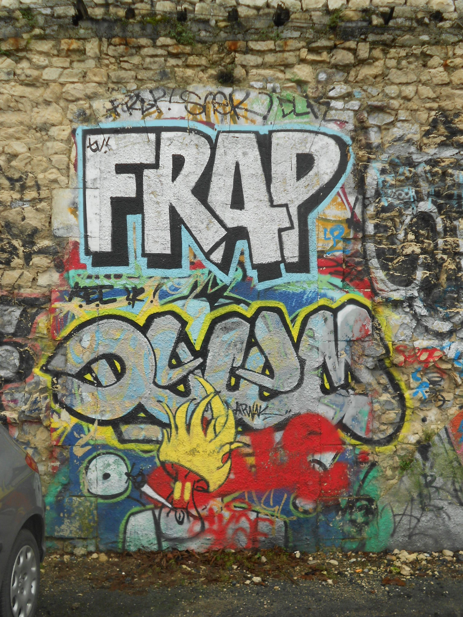 Au delà du fait que c’est une région charmante, nous avons été surpris de trouver des murs au détour de nos promenades. Voici des photos prises sur un parking. Il s’agit des zones de stationnement qui se trouvent face à la Tour Saint Nicolas, entre la rue de l’Armide et la rue de l’Archimède, pour ceux qui voudraient aller jeter un œil.