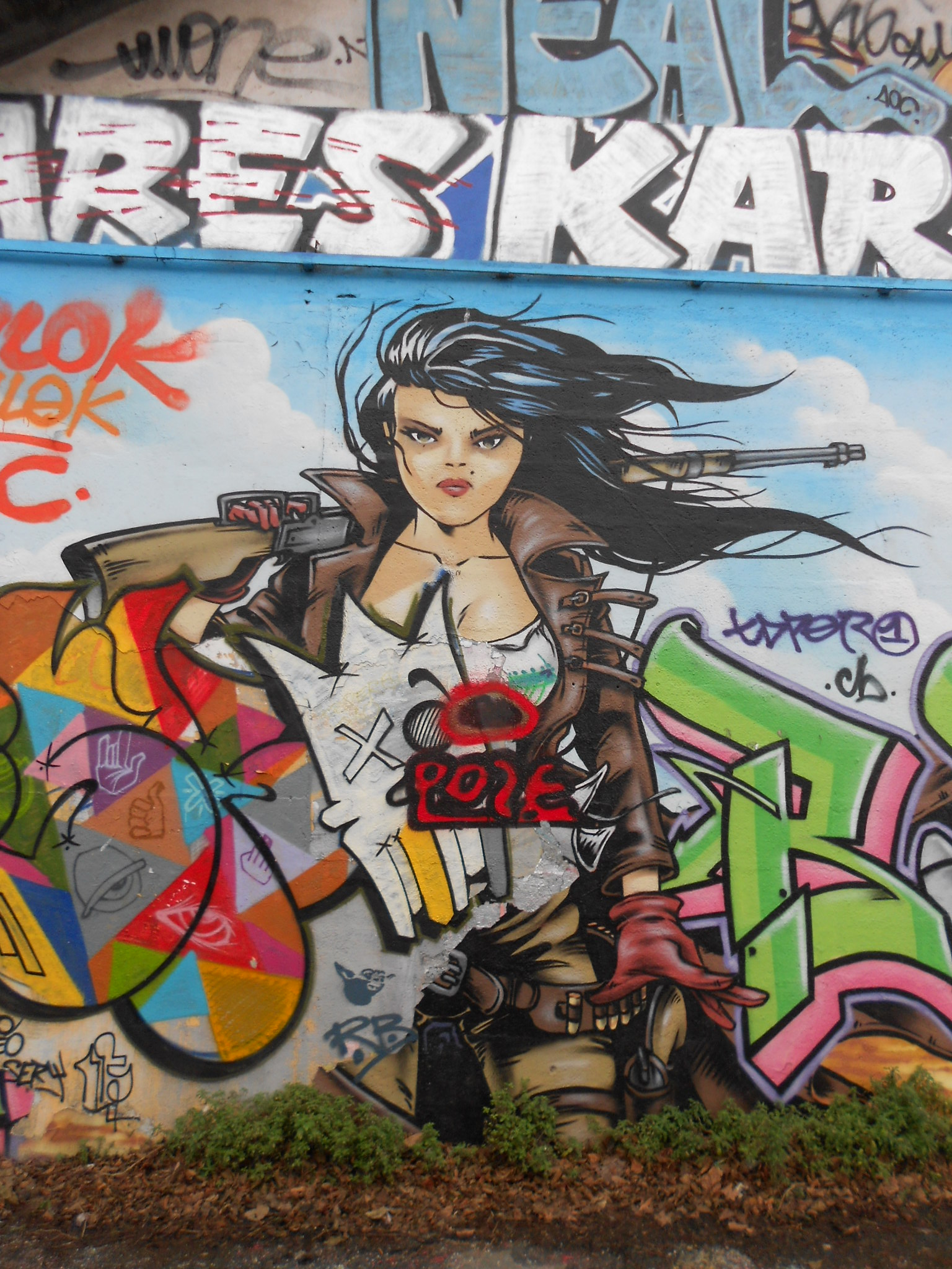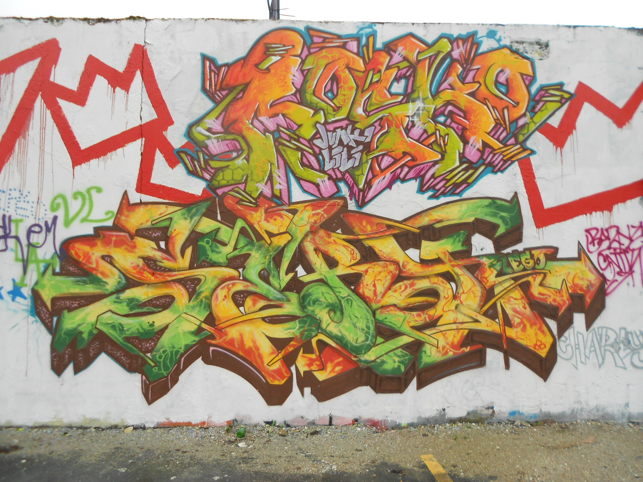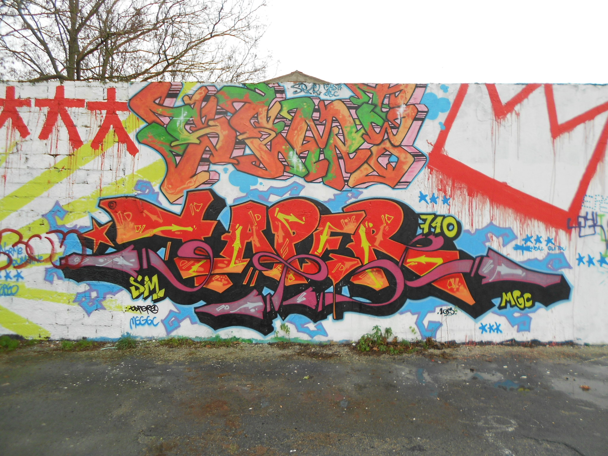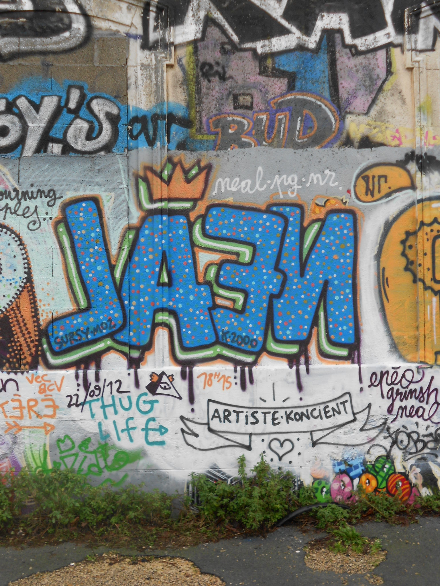 Au delà du fait que c’est une région charmante, nous avons été surpris de trouver des murs au détour de nos promenades. Voici des photos prises sur un parking. Il s’agit des zones de stationnement qui se trouvent face à la Tour Saint Nicolas, entre la rue de l’Armide et la rue de l’Archimède, pour ceux qui voudraient aller jeter un œil.