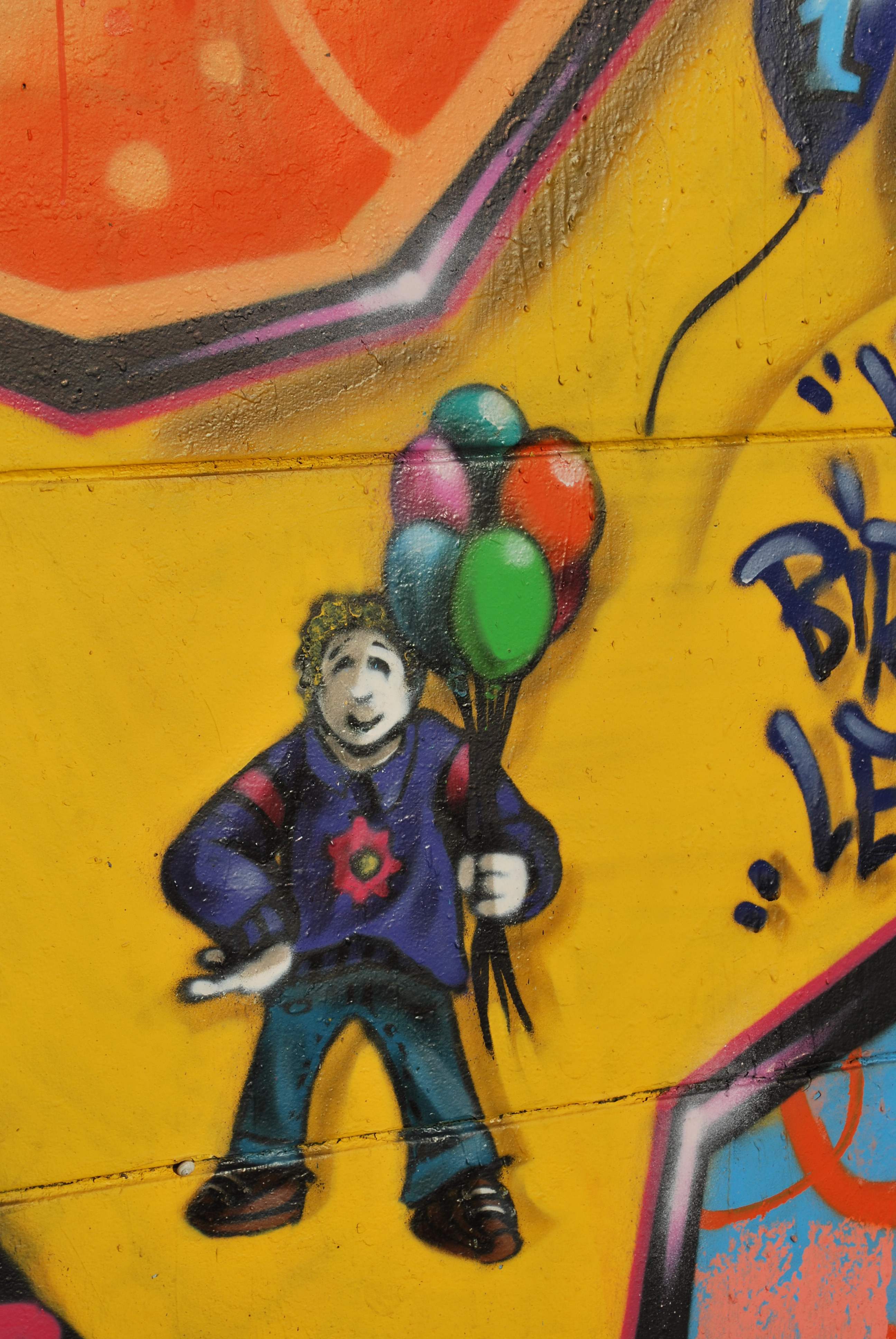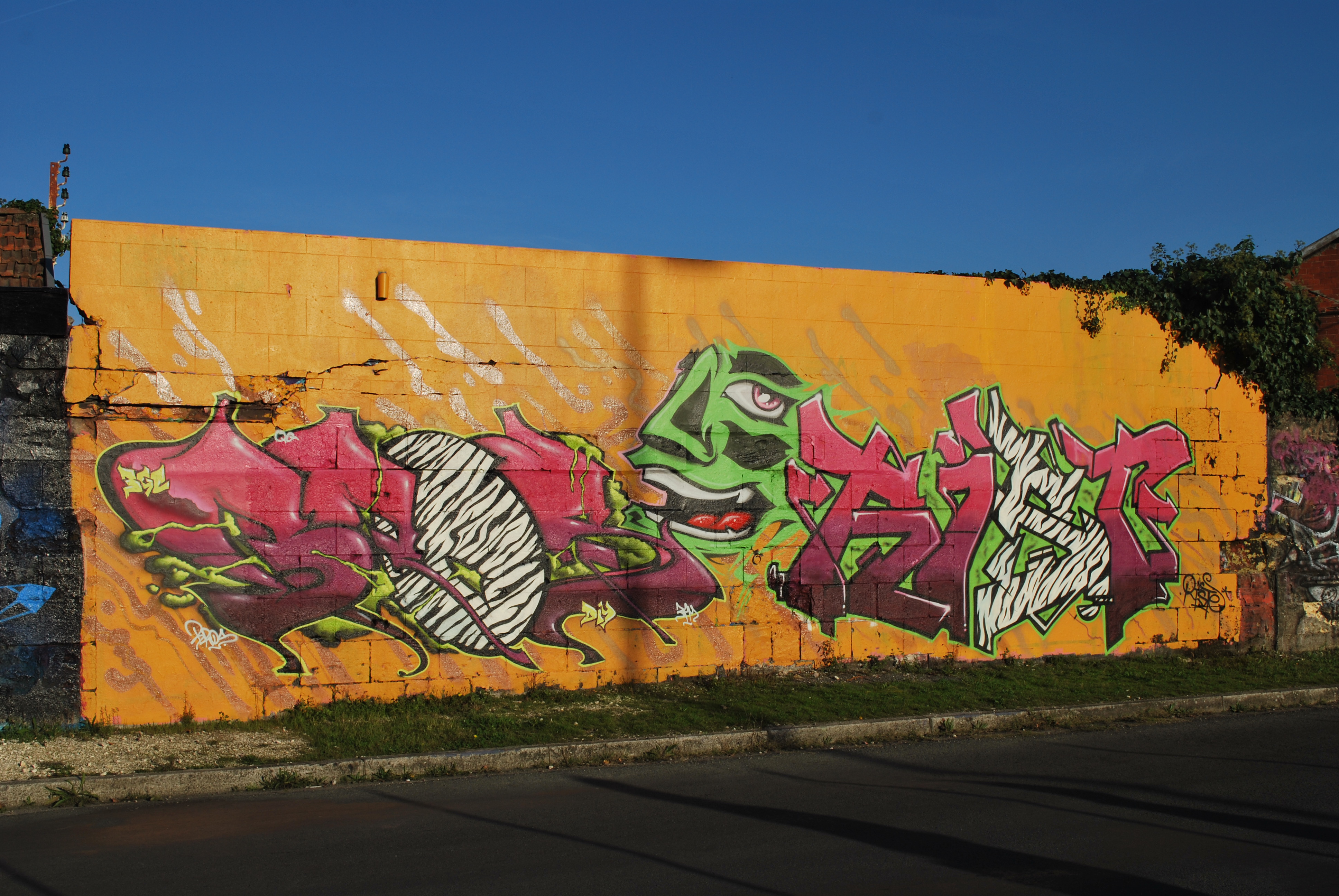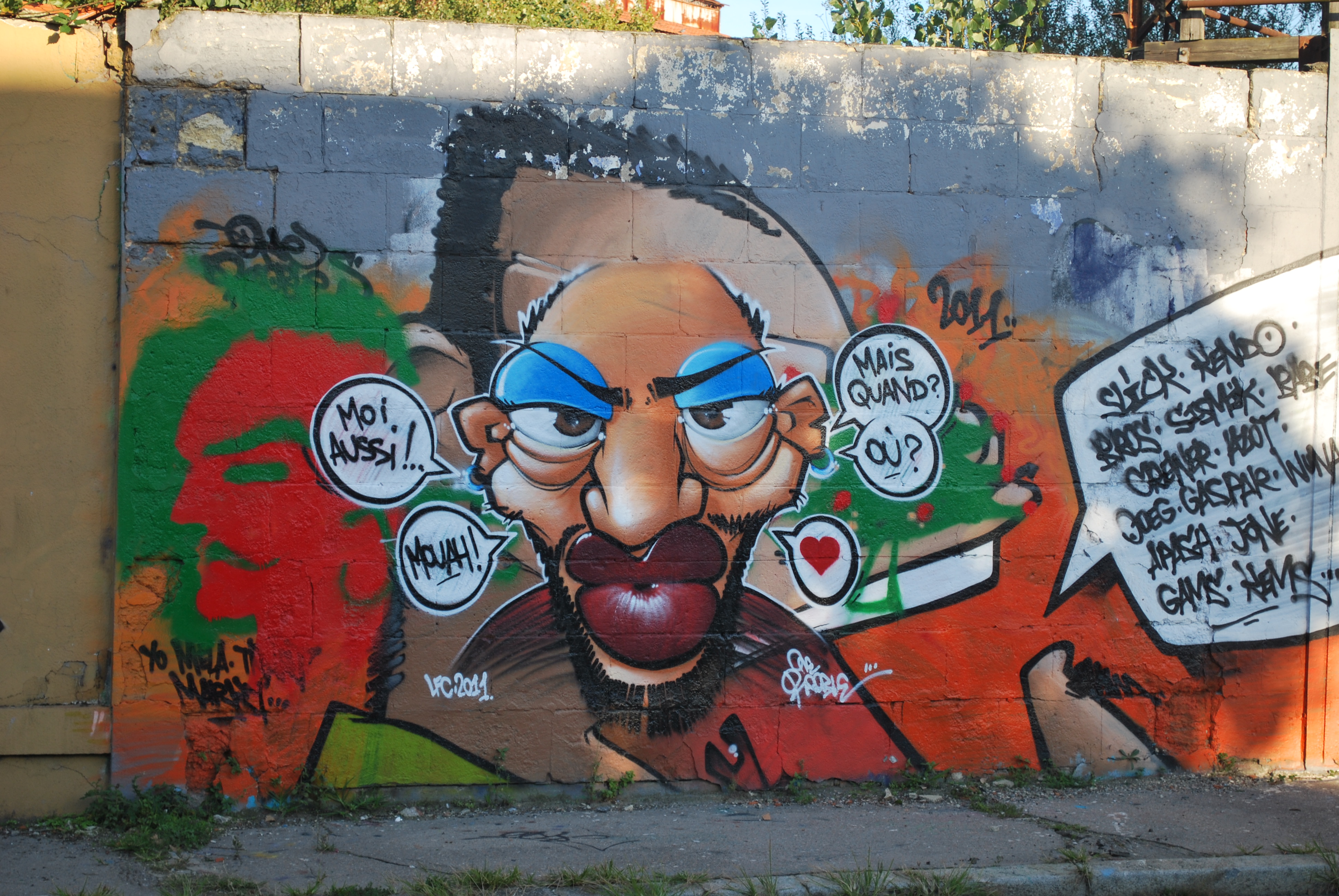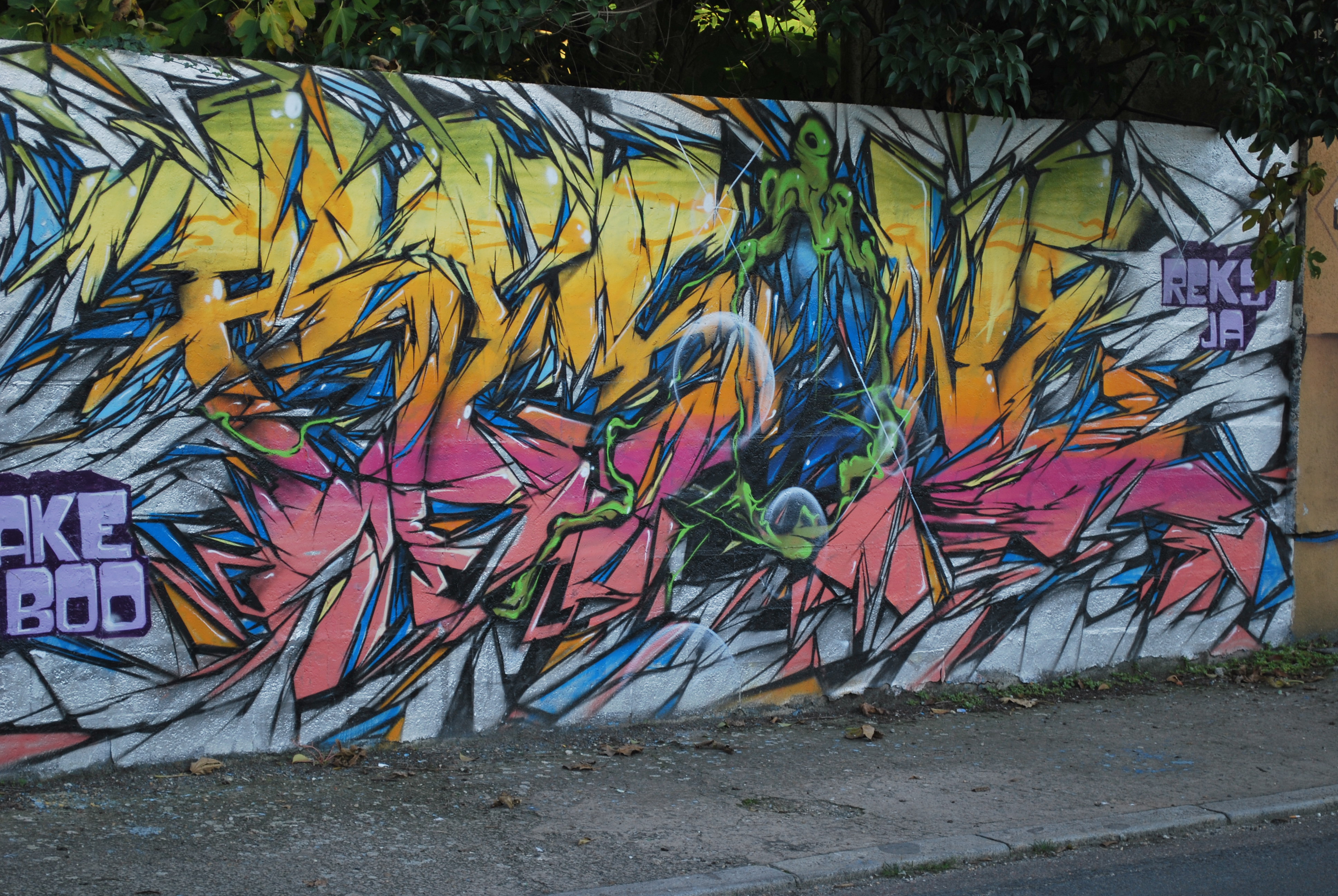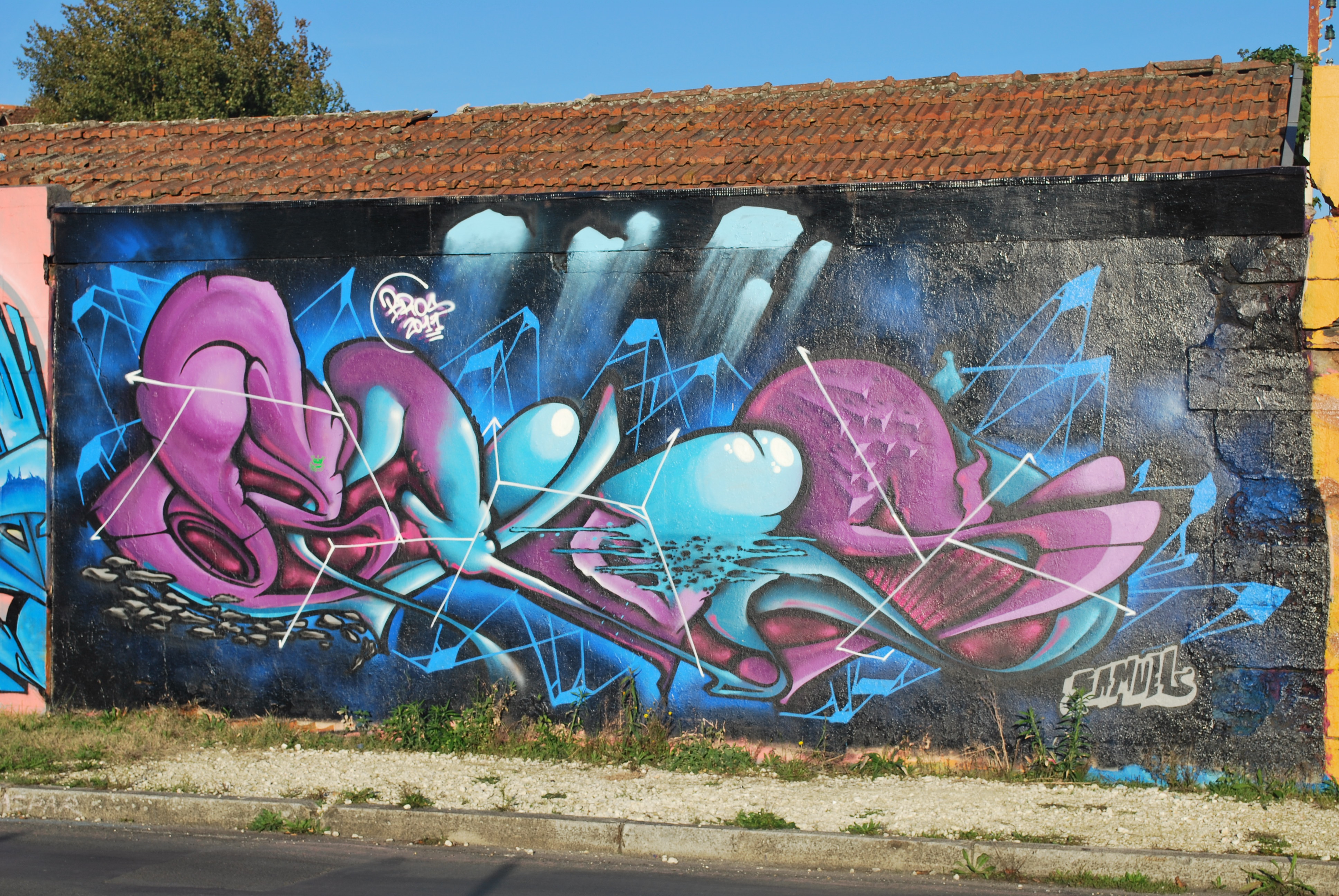 Le lettrage devient illisible ! Il s’agit d’un travail sur la forme, le style et les effets. Des personnages sont éventuellement présents. Les lettres sont enchevêtrées, déformées, non reconnaissables. C’est une production qui se situe entre le lettrage et la fresque.