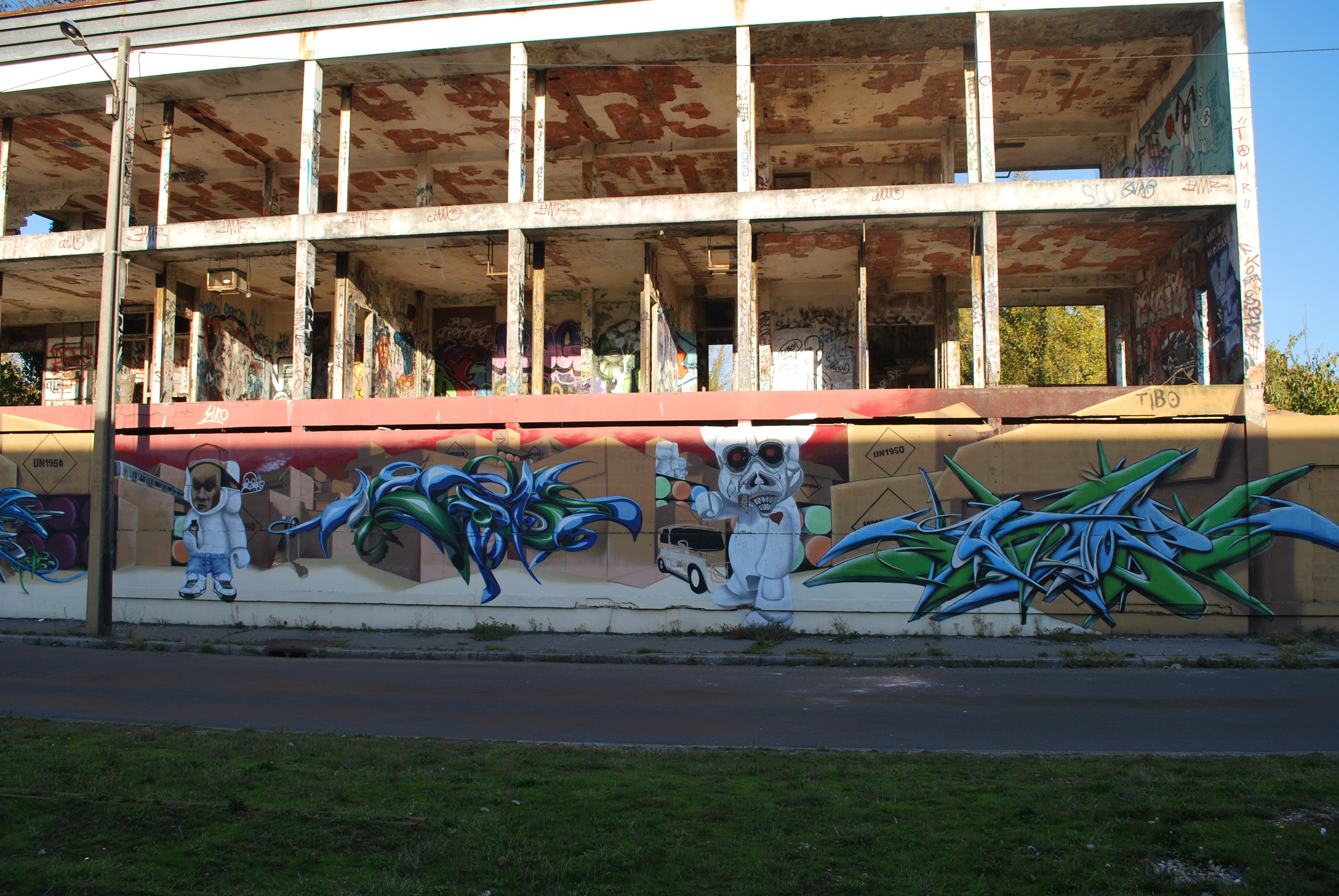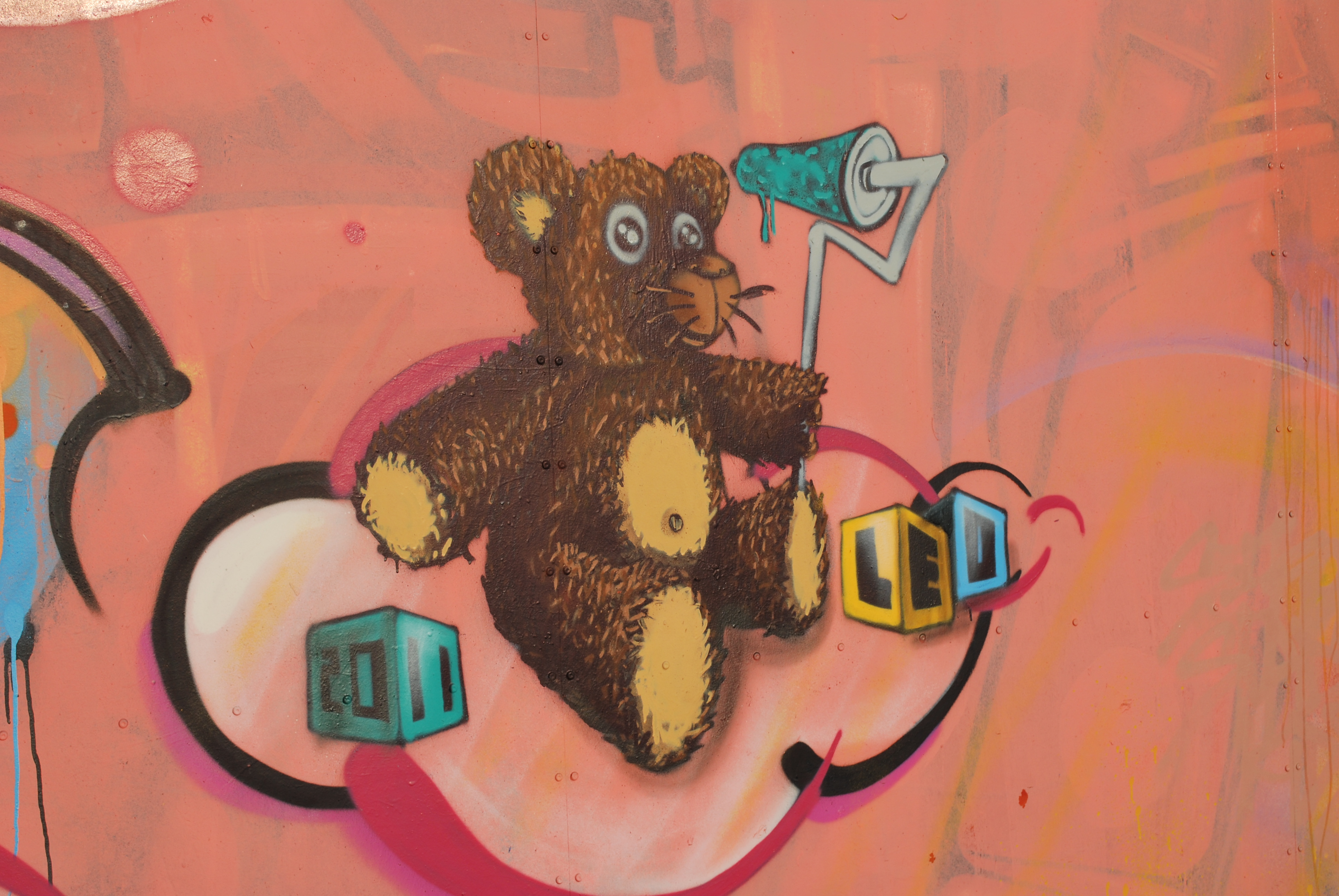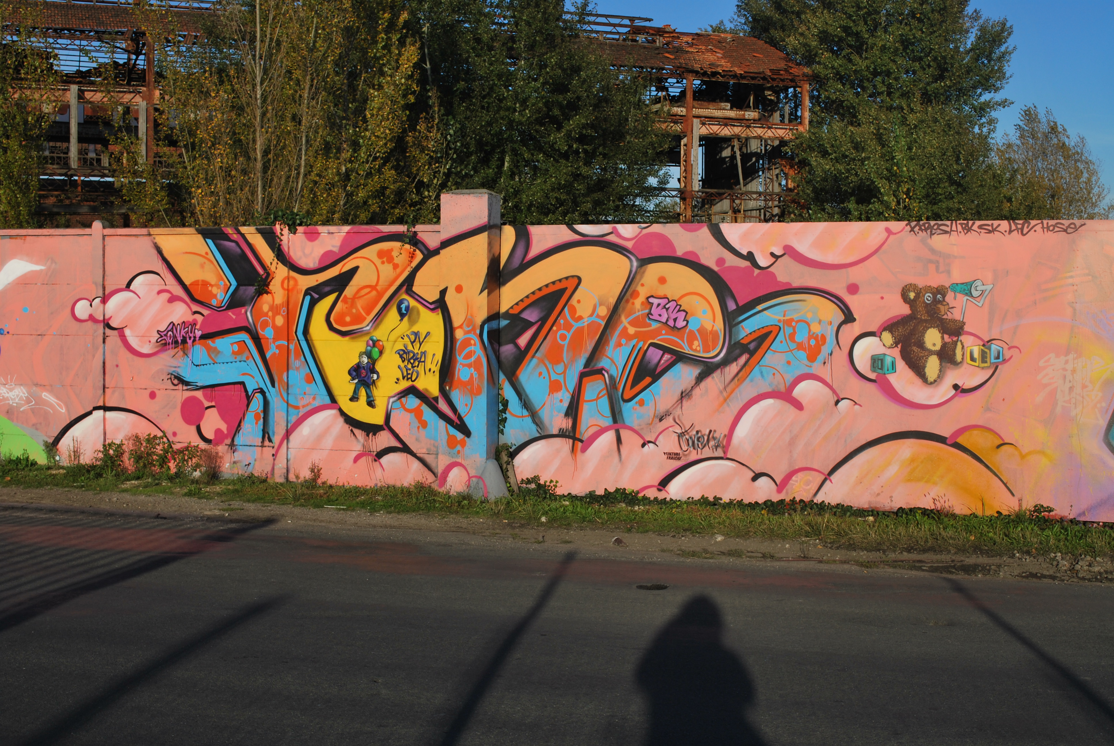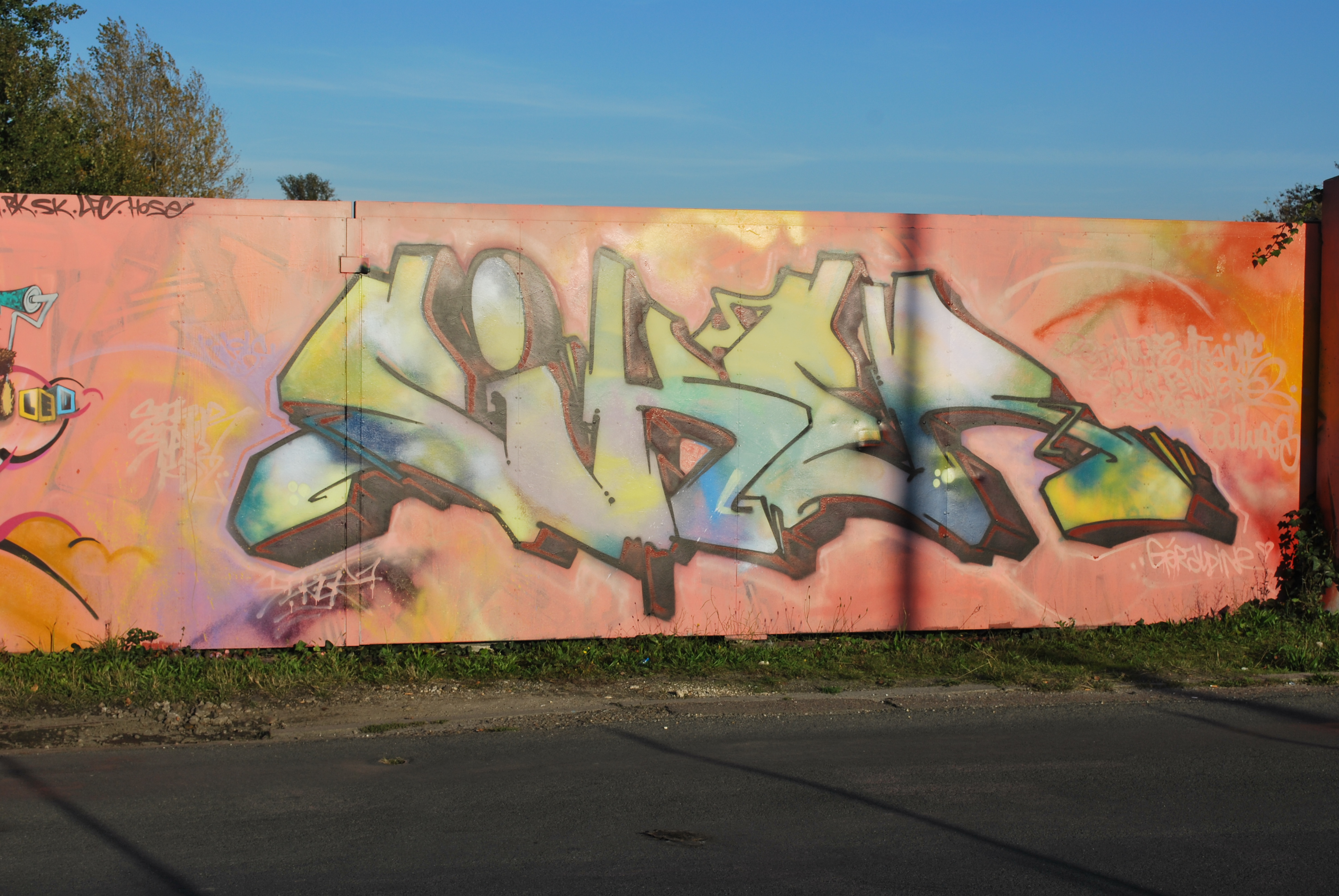 Le lettrage devient illisible ! Il s’agit d’un travail sur la forme, le style et les effets. Des personnages sont éventuellement présents. Les lettres sont enchevêtrées, déformées, non reconnaissables. C’est une production qui se situe entre le lettrage et la fresque.
