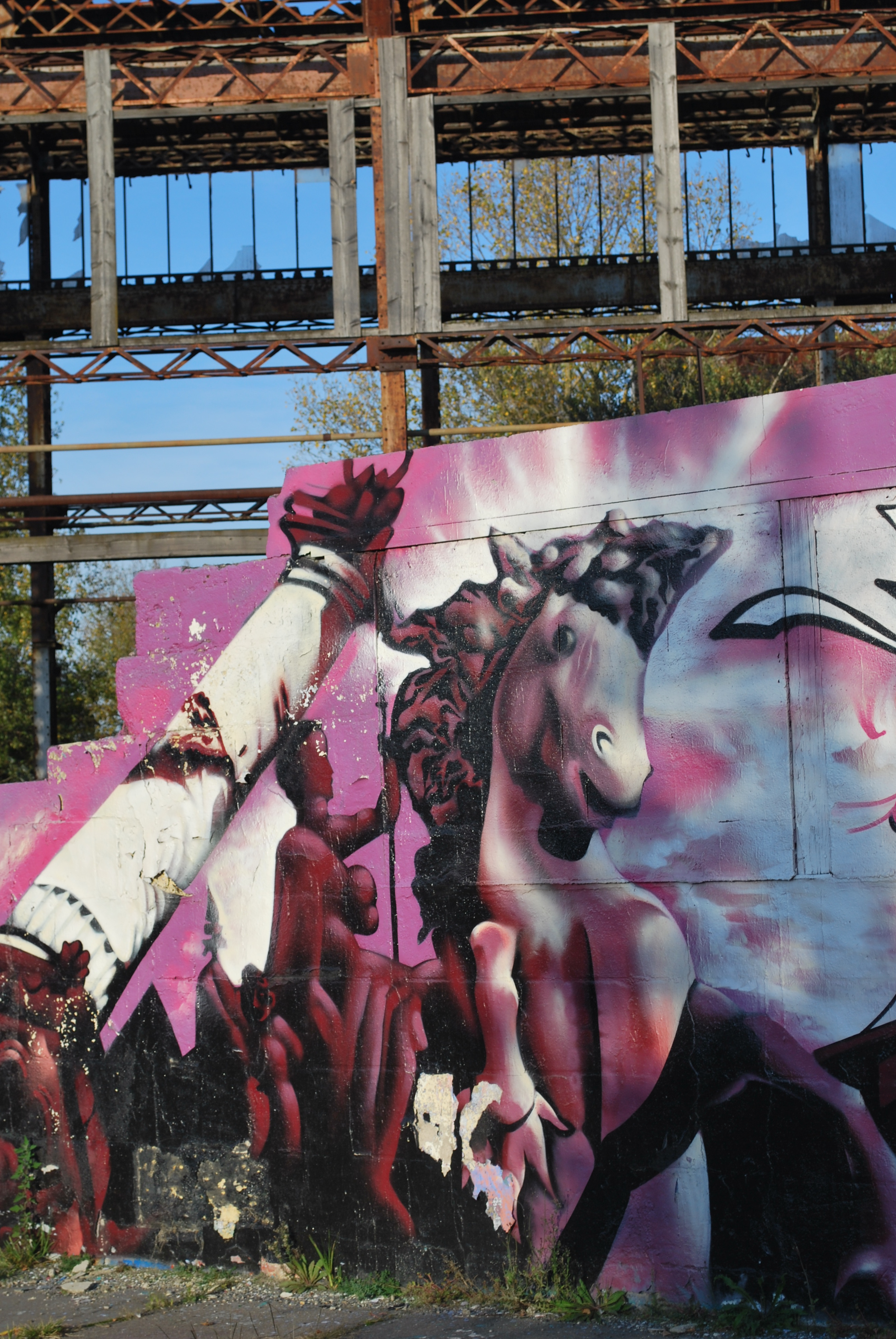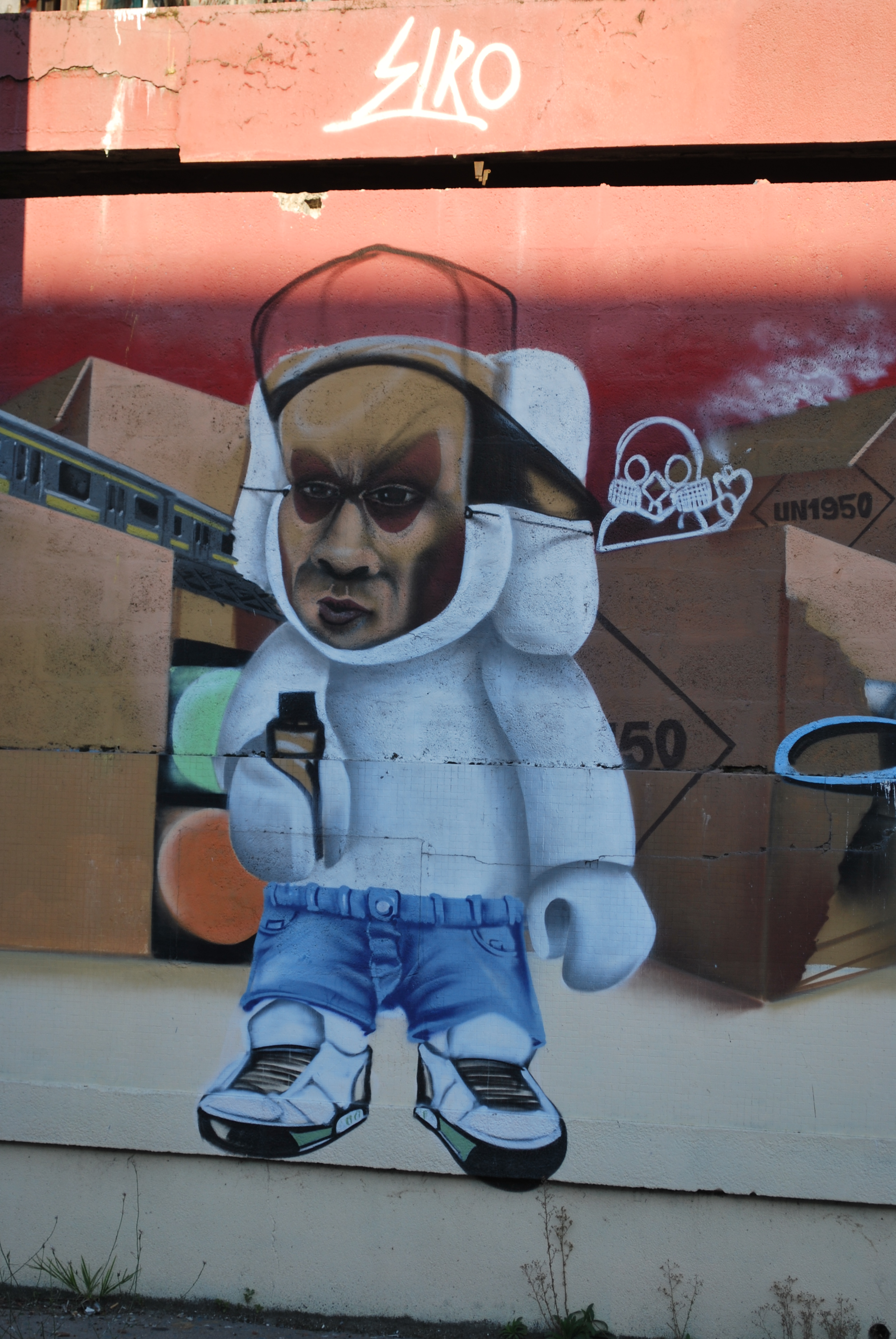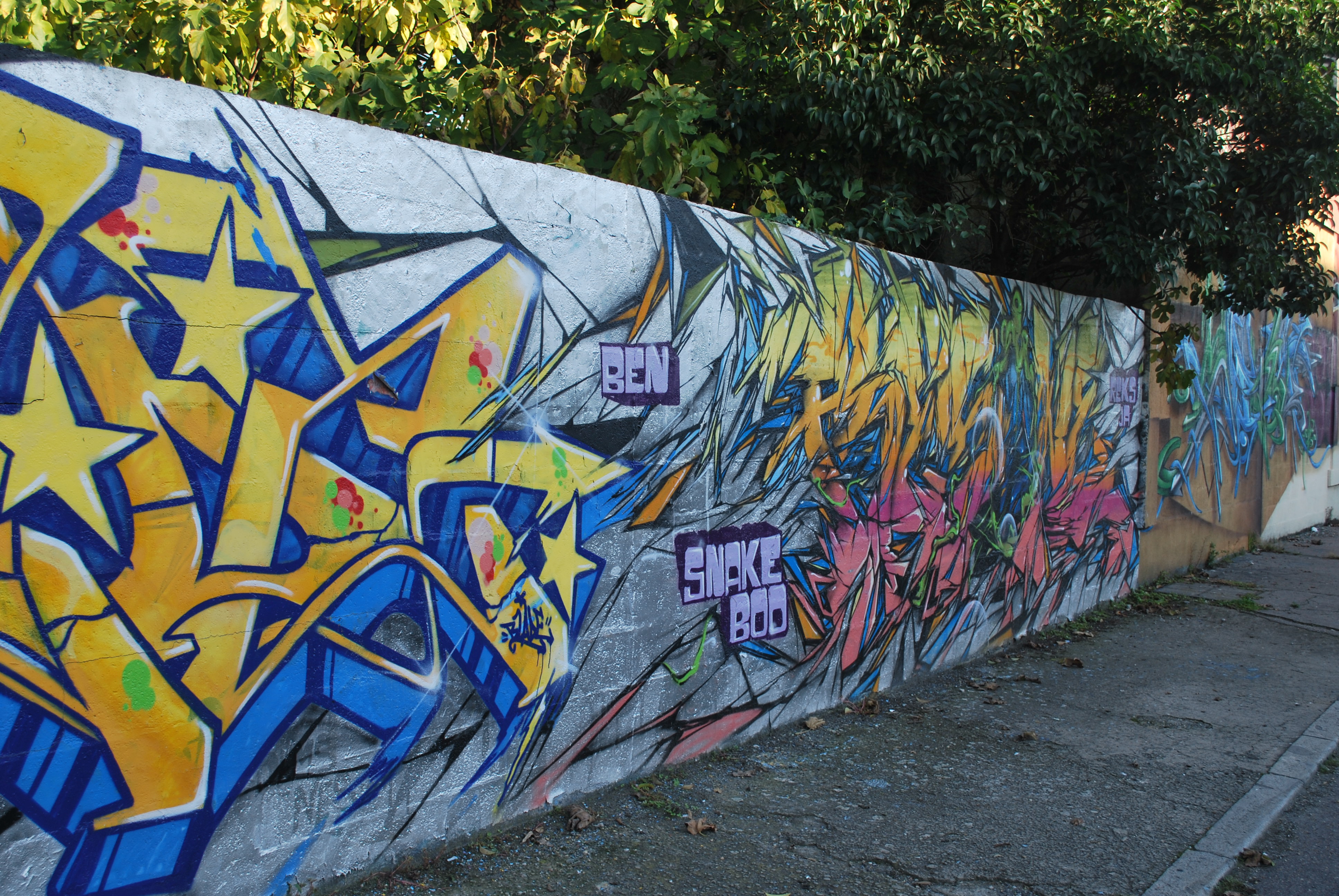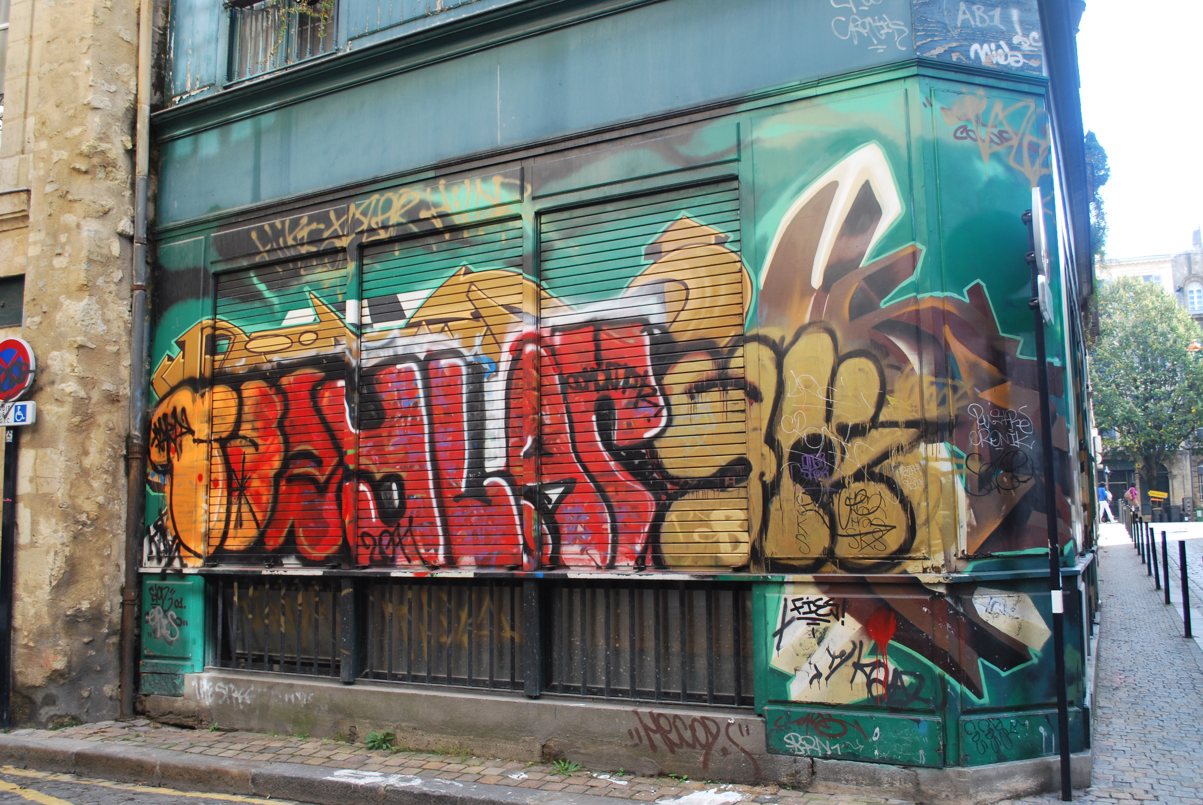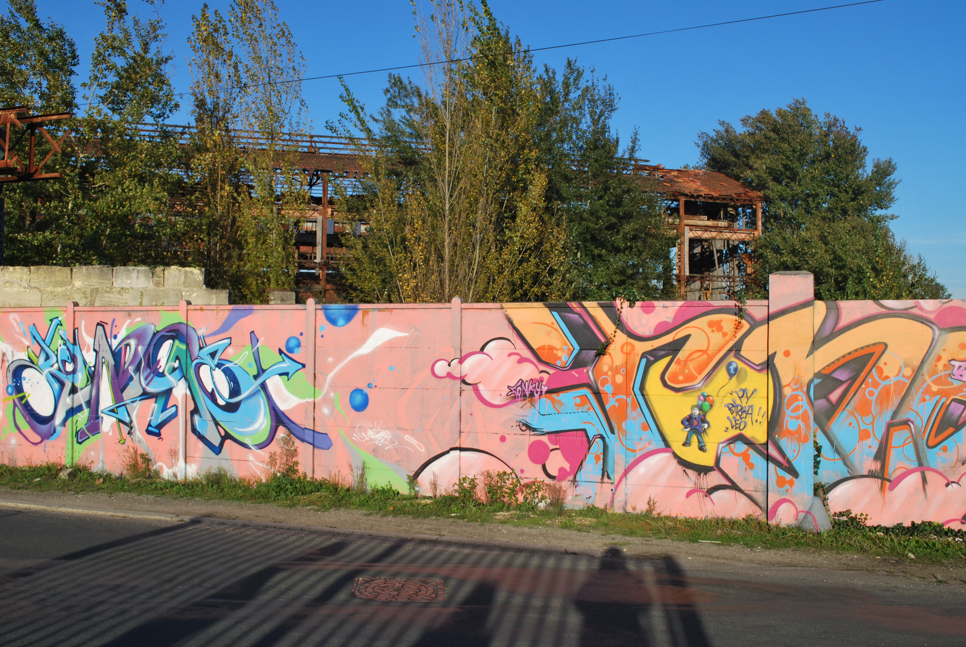Le lettrage devient illisible ! Il s’agit d’un travail sur la forme, le style et les effets. Des personnages sont éventuellement présents. Les lettres sont enchevêtrées, déformées, non reconnaissables. C’est une production qui se situe entre le lettrage et la fresque.