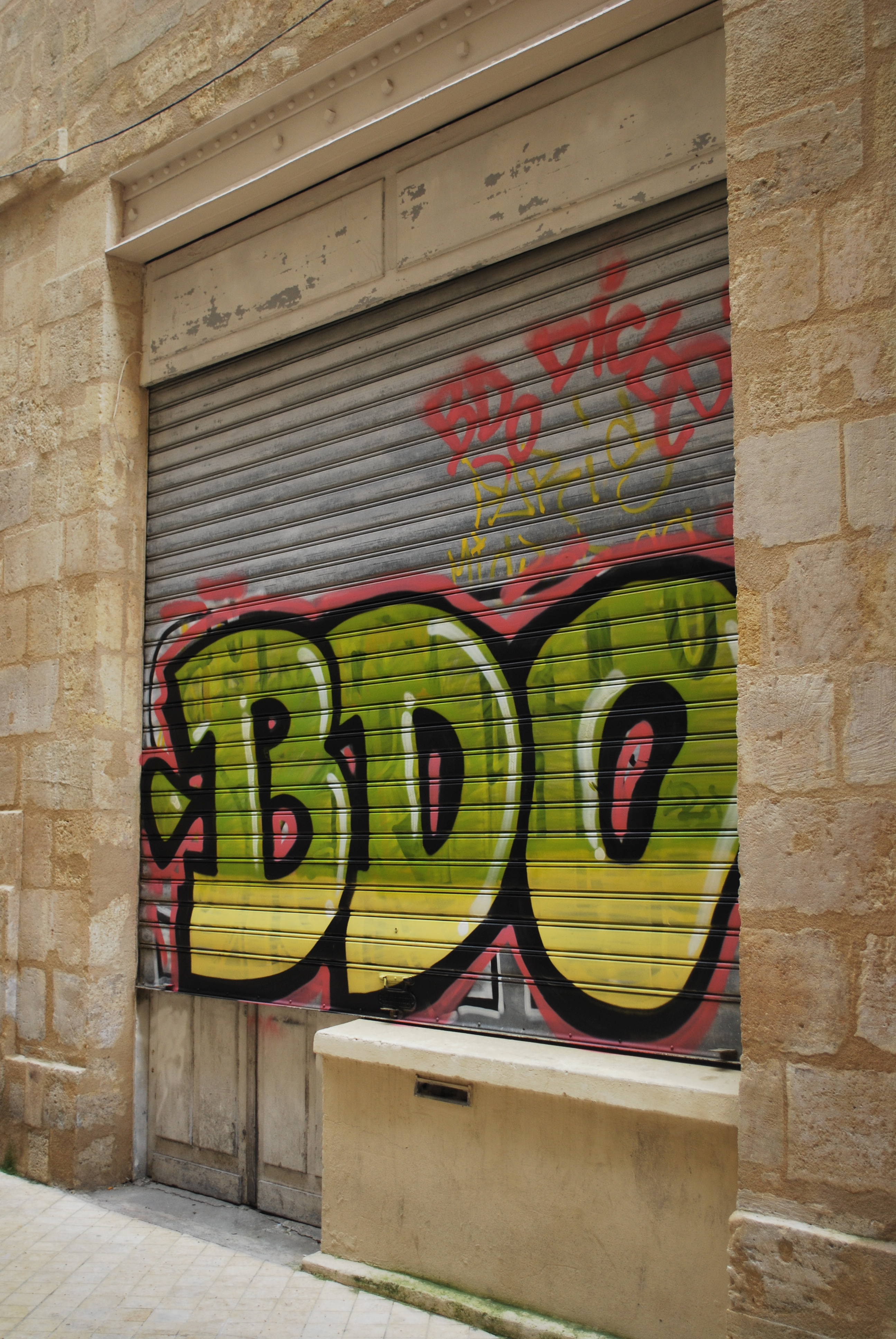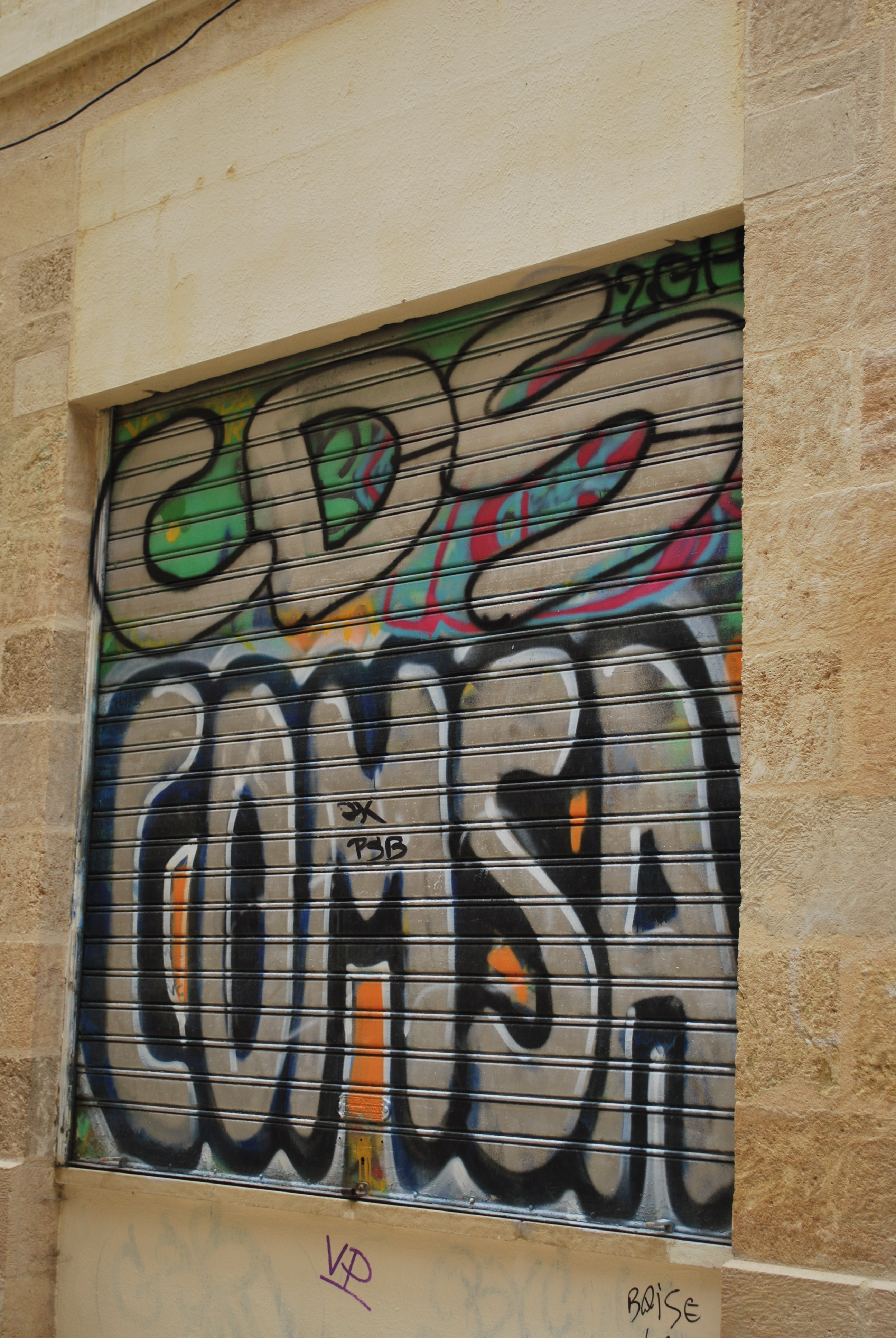Lettrage qui se travaille de haut en bas et sur l’ensemble du support. L’objectif est de donner un maximum de visibilité au graf qui est lisible.