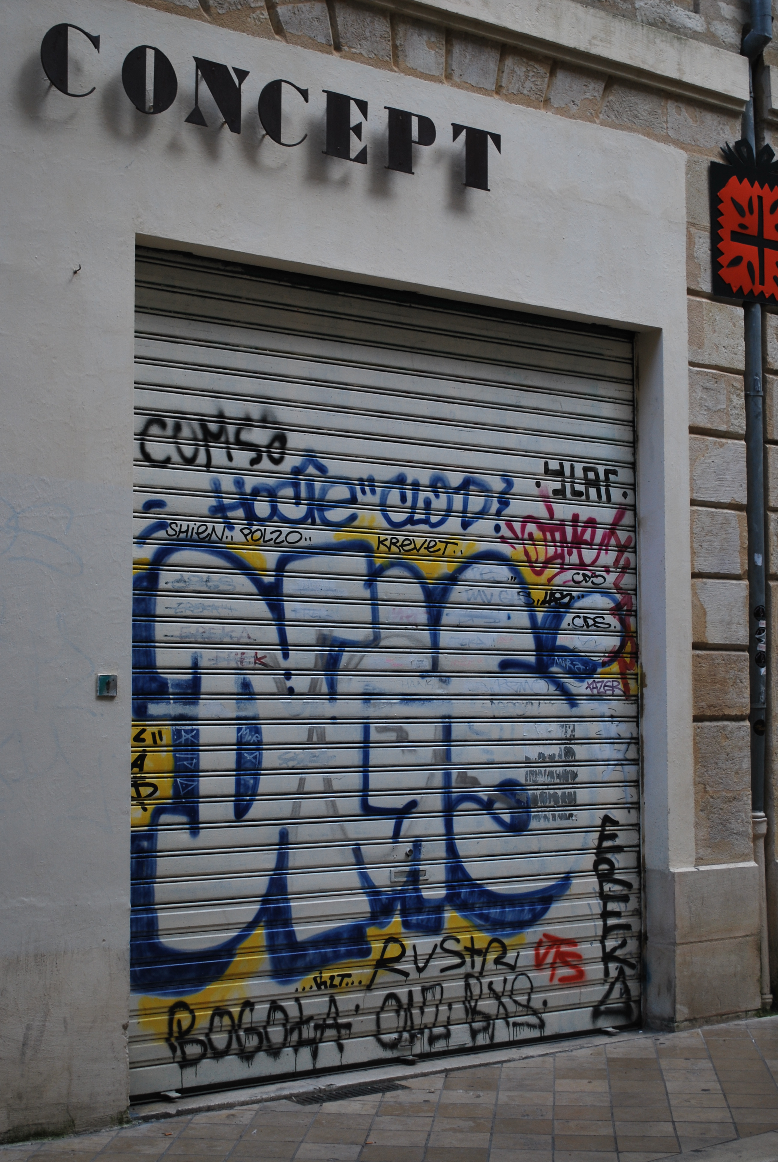 Le tag est une signature stylisée qui marque le passage de son auteur. En ce sens, il n’a d’intérêt que pour lui. Et c’est comme ça qu’il s’inscrit n’importe où : poubelles, bancs d’arrêt de tram, murs, panneaux etc… Le support n’a aucune importance et il n’y a pas de mise en scène.